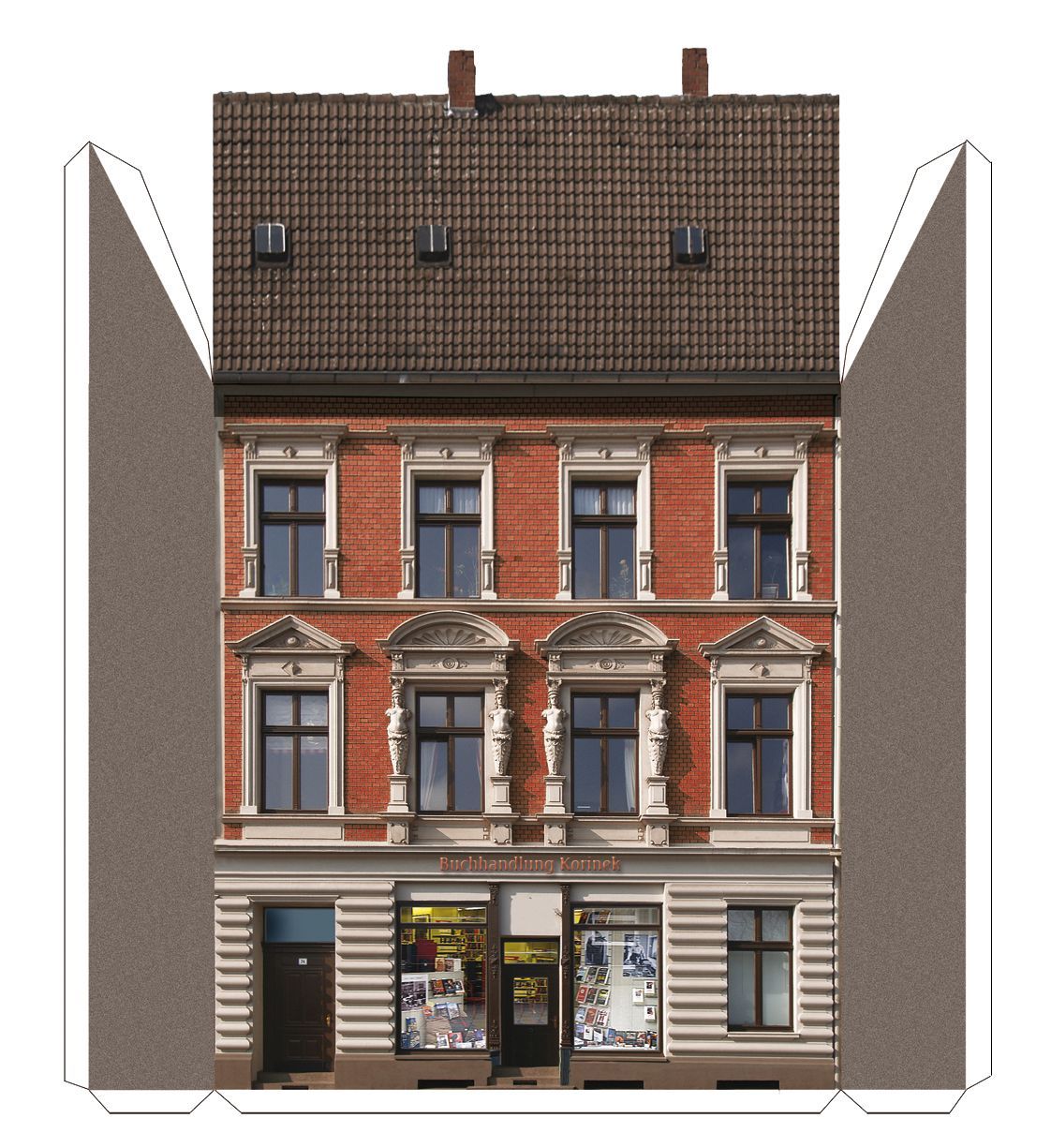 In unserem Online-Shop bieten wir für diverse Spurweiten zahlreiche Druckvorlagen mit Halbreliefgebäuden an.
