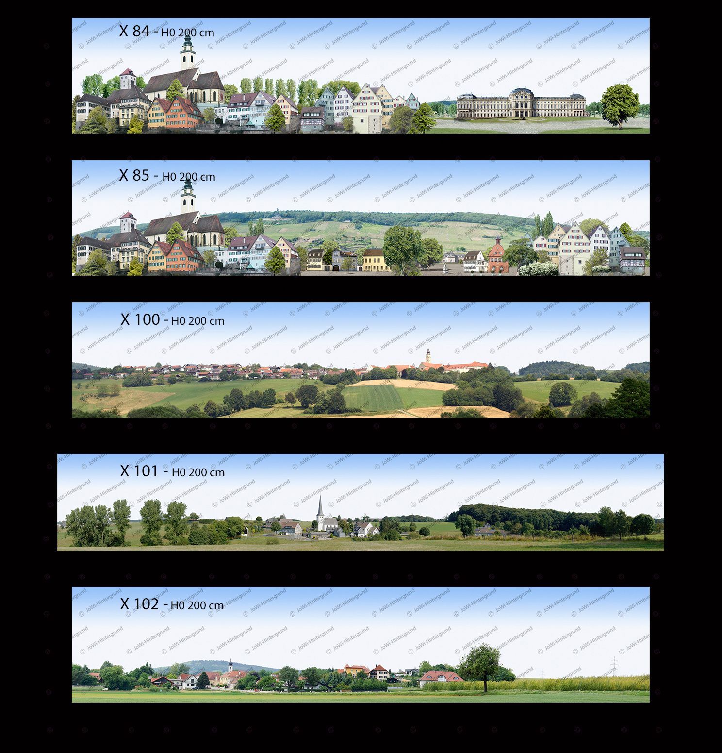 Die hier gezeigten Motive können Sie so wie abgebildet einzeln per Email bei uns bestellen. Eine Bestellung über unseren Online-Shop ist nicht möglich. - Die Höhe beträgt, soweit nicht anders gewünscht, 40 cm. Die angegebenen Längenmaße gelten für H0. Alle Motive können auf Wunsch auch für die kleineren Spurweiten Z, N und TT sowie für die Spurweiten 0, 1 und LGB maßstabsgerecht gedruckt werden.